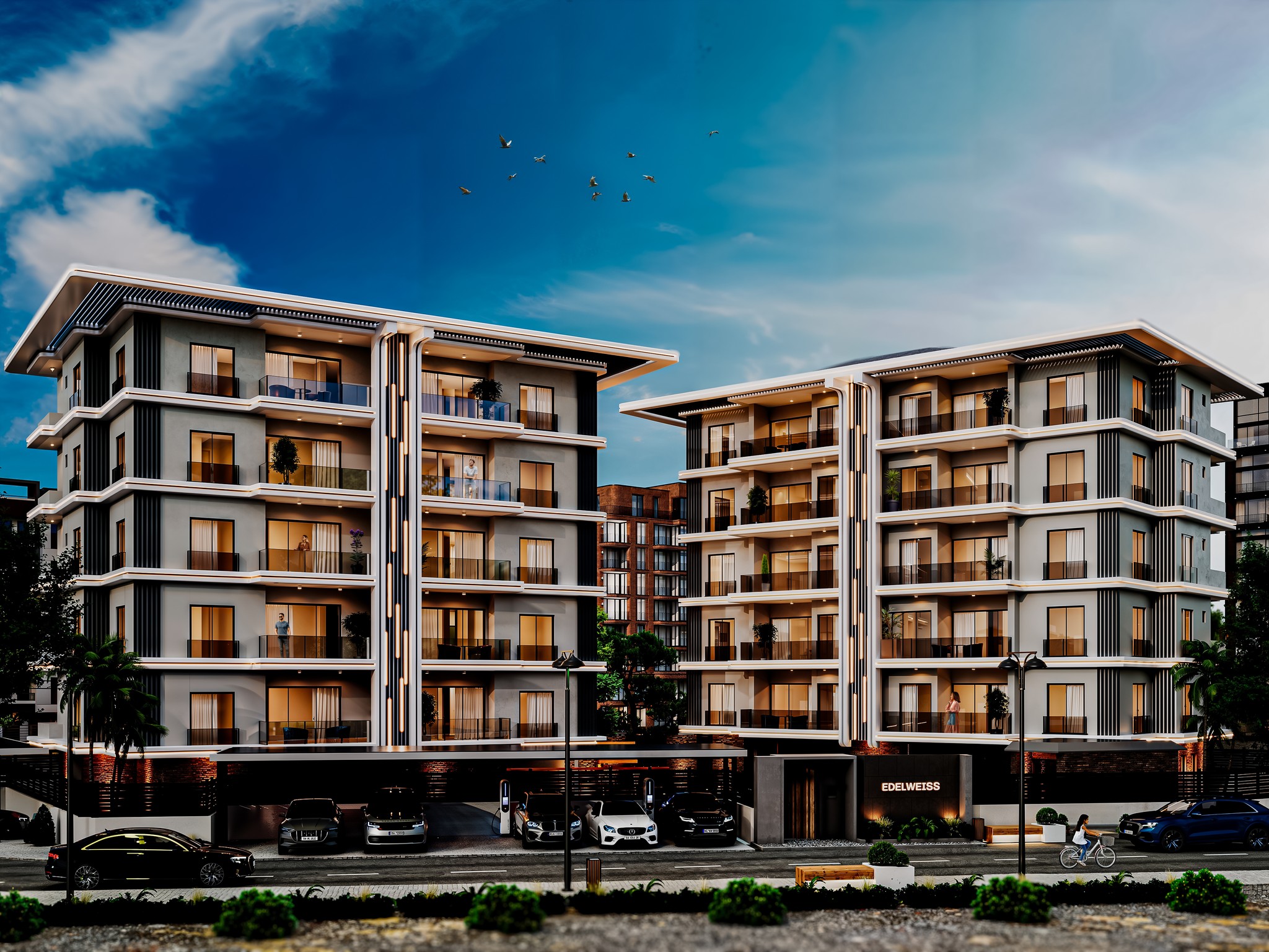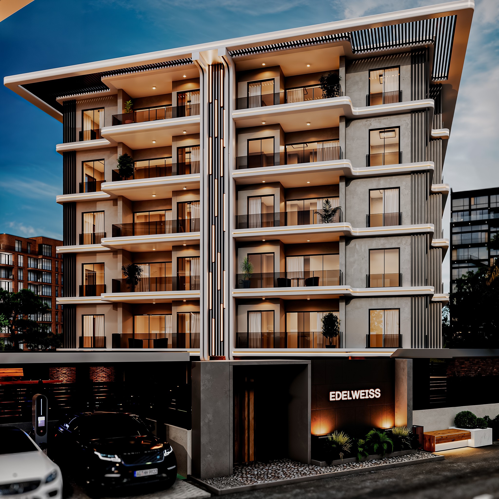 Bu bölümde Edelweiss projesinin dış cephe görsellerini ve detaylarını inceleyebilirsiniz. Modern mimari çizgiler, kullanılan malzemeler ve dış görünüş hakkında bilgi almak için aşağıdaki görselleri ve açıklamaları takip edebilirsiniz.